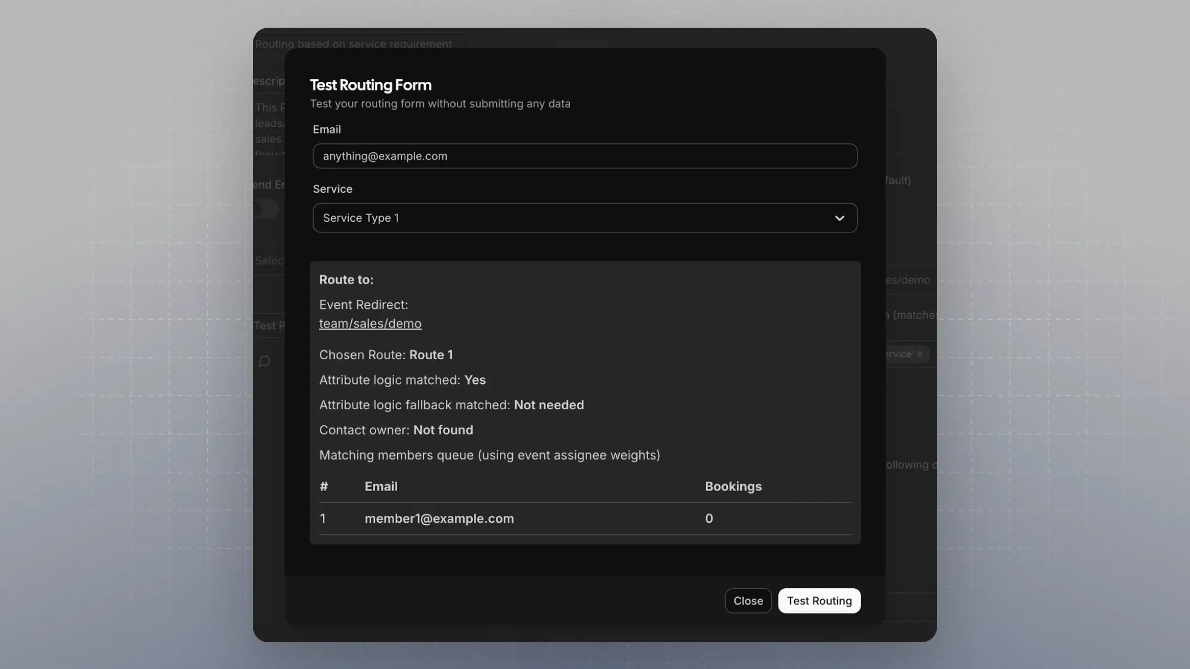 • The system should now route the booking to a team member with that value assigned in their attributes